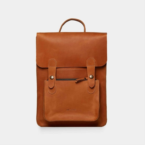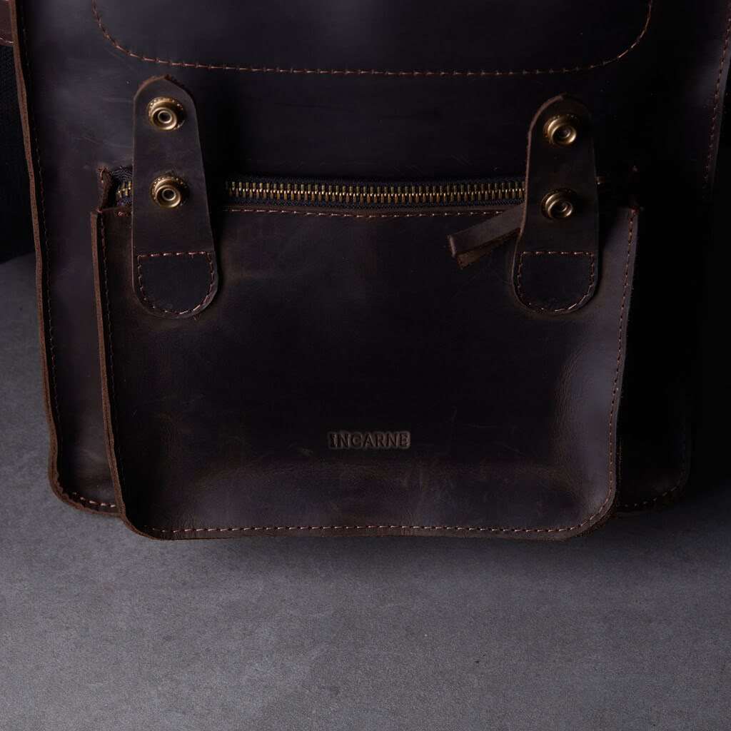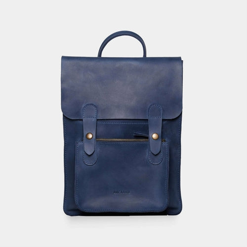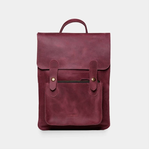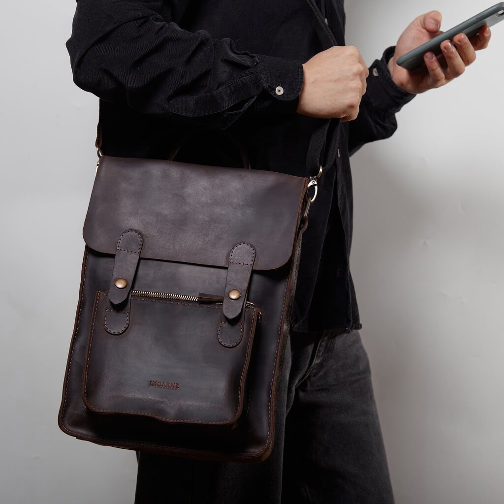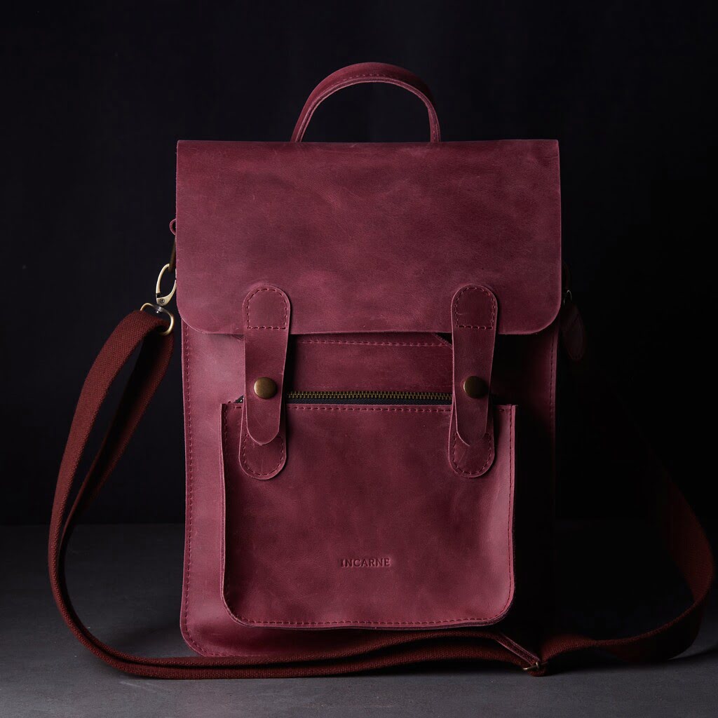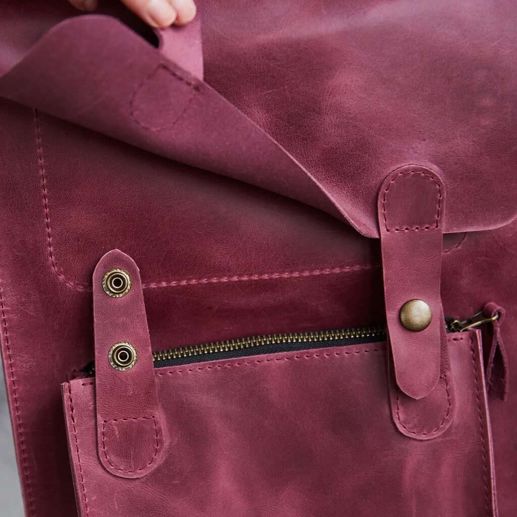 Brit is a convertible backpack briefcase: you can carry it as a cross-body bag or a rucksack. The bag is closed with a zipper, and the top opens with metal buttons that have two different positions.