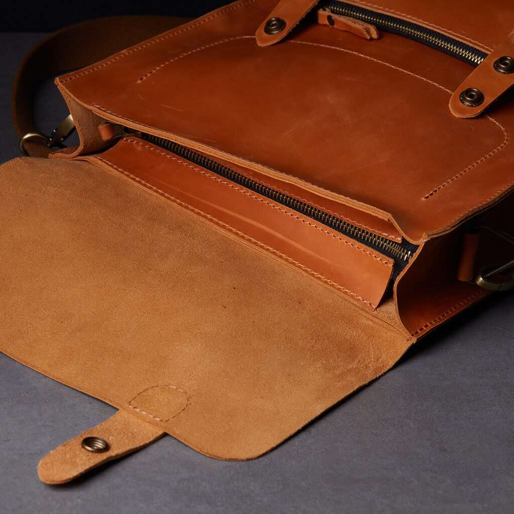 There are two felt pockets inside: one for a laptop or tablet up to 13 inches, and the second one is for small essentials. The front pocket of the bag is spacious enough to fit a charger, a small wallet, a phone, a glasses case, and a mini notebook.